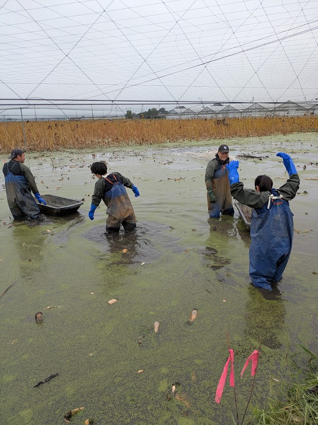 株式会社With Greenの社員の方々が蓮根の掘り取り体験に来てくれました!